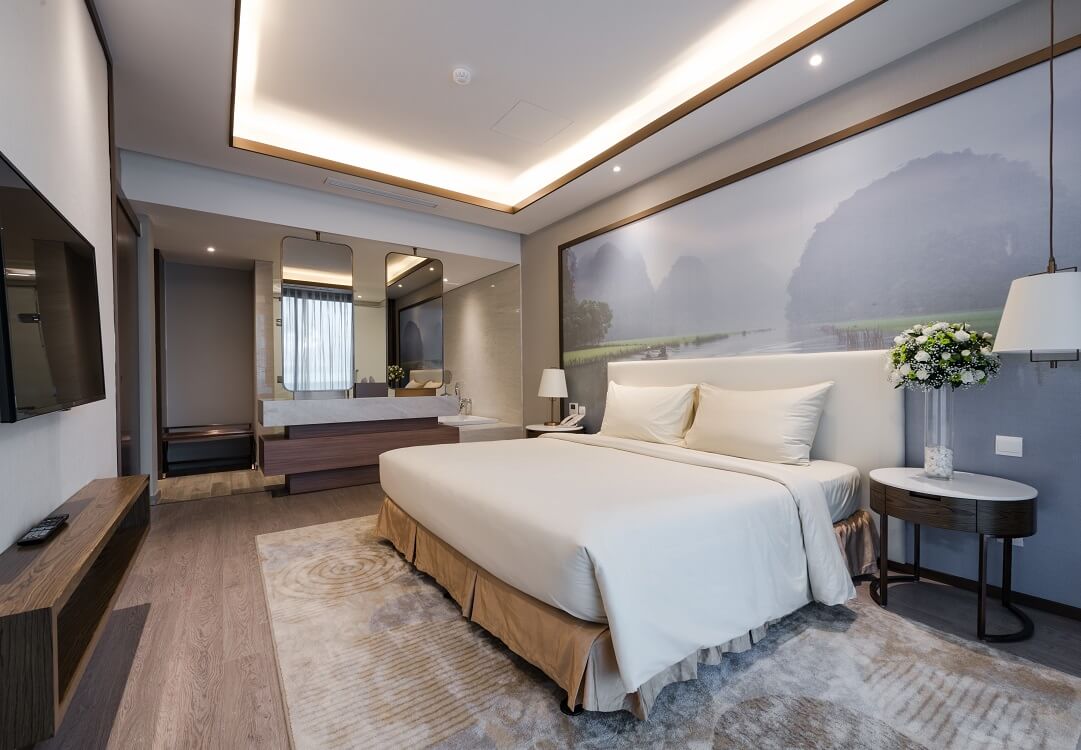 - Nghỉ dưỡng tại căn phòng đẳng cấp 5*, nội thất tiện nghi, không gian dễ chịu.